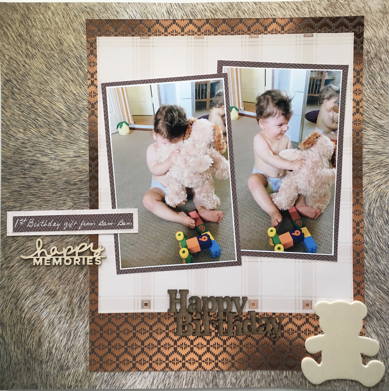 Our team loved her choice of background paper and super cute frame for the adorable photo! Awesome choice in title letters as well! Fantastic job Carolyn!